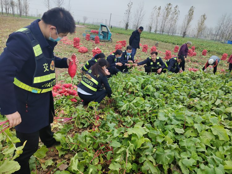 今年11月正值蘿卜上市的關(guān)鍵時(shí)期,可是偏偏遇上疫情來襲,愁壞了臨渙鎮(zhèn)前袁樓村的農(nóng)戶,因缺少勞動(dòng)力,銷售渠道也減少,蘿卜滯銷。堅(jiān)守在S202收費(fèi)站的黨員干部了解到該情況后,在積極應(yīng)對疫情防控的同時(shí),主動(dòng)對接農(nóng)戶,收費(fèi)之余組織站內(nèi)員工來到田間地頭,在農(nóng)戶的指導(dǎo)下,協(xié)助采收、打包、搬運(yùn),大家忙得熱火朝天。本次助農(nóng)活動(dòng),不僅收獲了勞動(dòng)豐收的喜悅,勞作之余,在場的每名員工還自掏腰包購買滯銷蘿卜,用實(shí)際行動(dòng)為群眾辦實(shí)事,辦好事,為鄉(xiāng)村振興貢獻(xiàn)了微薄之力,受到當(dāng)?shù)匕傩盏囊恢潞迷u。