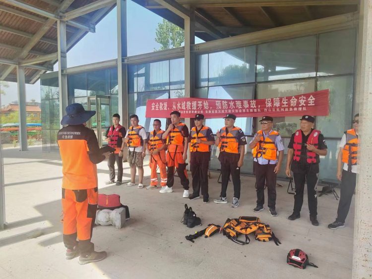 為了進一步增強社會救援隊伍的整體戰(zhàn)斗水平,提高水域救援安全知識,掌握水上救援技能。2023年8月19日,在淮北市烈山區(qū)應(yīng)急管理局及南湖公園運營管理有限公司領(lǐng)導(dǎo)的支持與幫助下,淮北市烈山區(qū)民間應(yīng)急救援隊聯(lián)合南湖公園管理有限公司人員共同開展“預(yù)防水難事故,保障生命安全”專題水域訓(xùn)練。