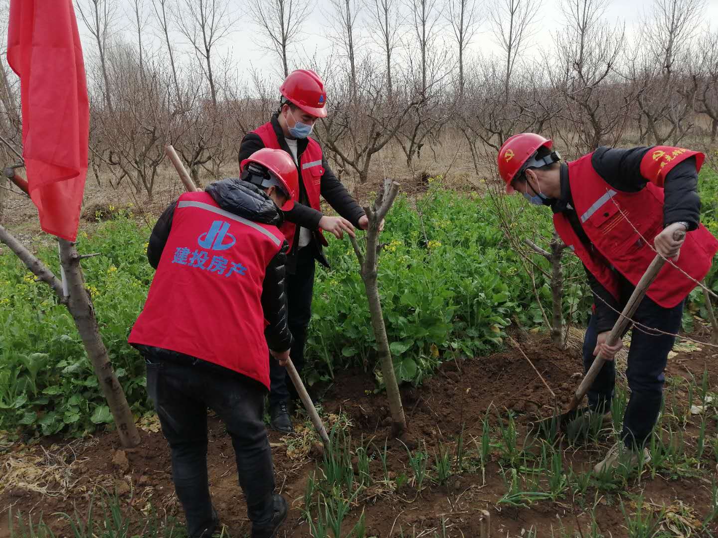 房地產(chǎn)公司員工在綠金花園項目工地現(xiàn)場植樹
