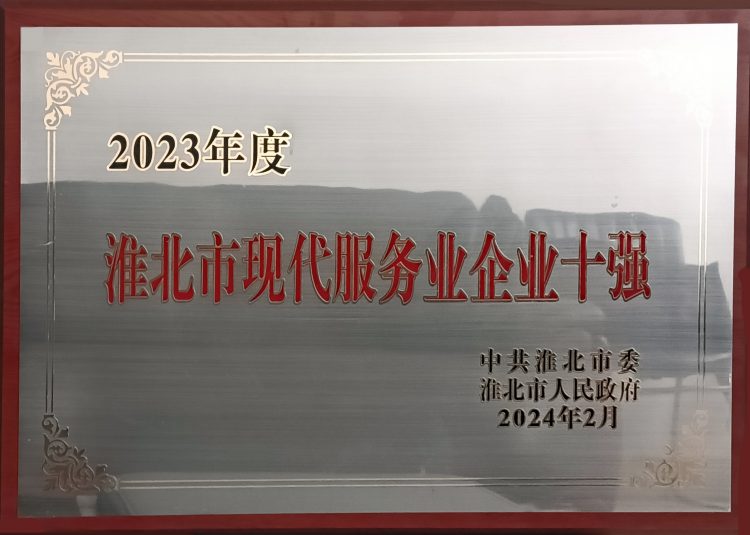 淮北市建投商貿(mào)有限公司再次榮獲全市“現(xiàn)代服務業(yè)企業(yè)十強”榮譽稱號
