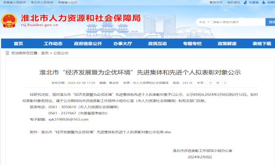 淮北市惠黎建設(shè)工程管理有限公司榮獲淮北市“經(jīng)濟(jì)發(fā)展暨為企優(yōu)環(huán)境”先進(jìn)集體稱號(hào)