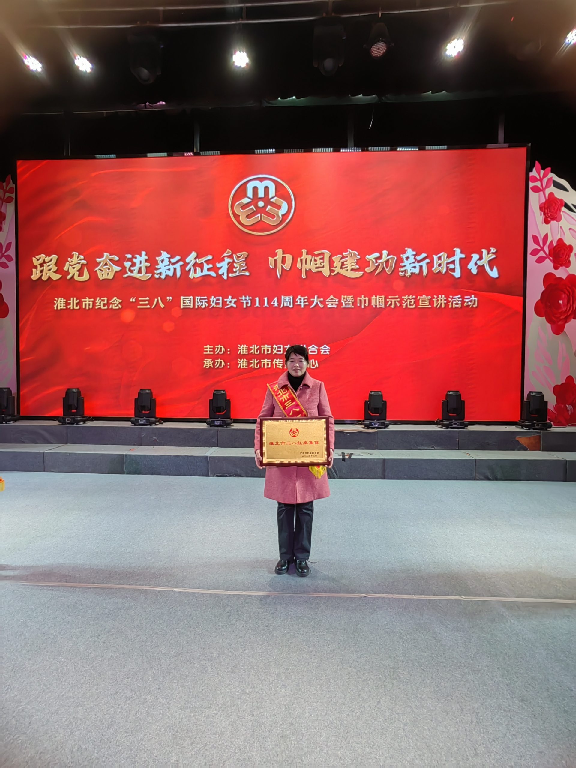 近日,淮北城市泊車管理有限公司路面收費1組在由淮北市婦女聯(lián)合會舉辦的淮北市紀念“三八”國際婦女節(jié)114周年大會暨巾幗示范宣講活動中榮獲“淮北市三八紅旗集體”榮譽稱號。