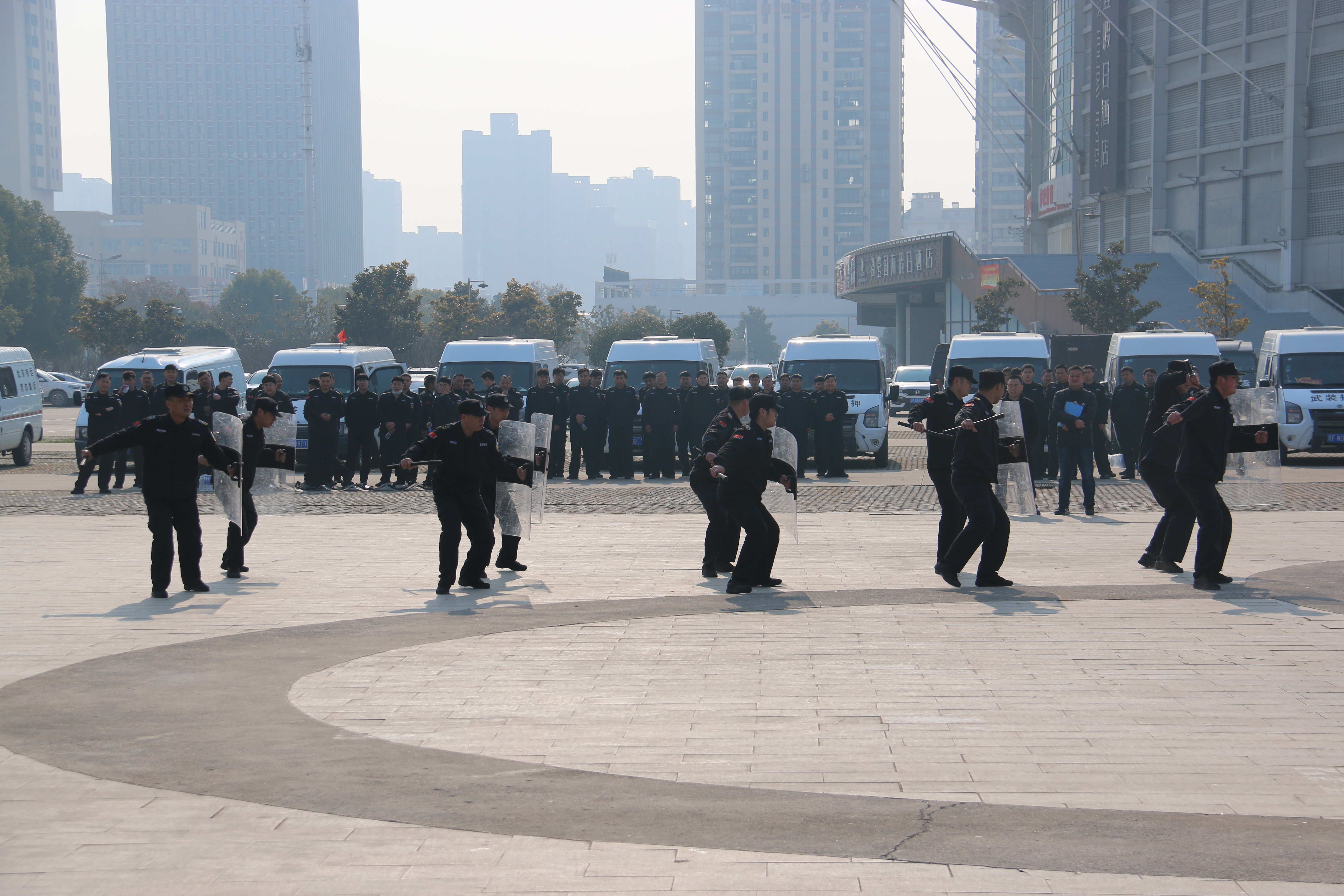 此次實(shí)操演練技能比武活動(dòng),既是年度考核的重要組成部分,也是對(duì)各中隊(duì)日常軍事訓(xùn)練和專業(yè)技能水平的實(shí)際檢驗(yàn)。演練比武課目設(shè)置突出實(shí)戰(zhàn)化要求,分為軍事隊(duì)列、擒敵拳術(shù)表演、警棍盾牌、棍術(shù)。演練參賽的5支隊(duì)伍以各中隊(duì)為單位,全部由基層隊(duì)員抽組而成。在隨后進(jìn)行的過(guò)程中,節(jié)奏緊湊、動(dòng)作流暢、搏斗精彩,贏得了臺(tái)下觀眾陣陣喝彩和掌聲。公司總經(jīng)理作了總結(jié)發(fā)言,希望大家把技能比武的內(nèi)容真正運(yùn)用到實(shí)際工作中去,真正貫穿到平時(shí)的軍事訓(xùn)練之中。希望能夠打造一支技能過(guò)硬的保安隊(duì)伍,更好地完成崗位工作任務(wù),為促進(jìn)社會(huì)安全和諧穩(wěn)定做出更大貢獻(xiàn)。
