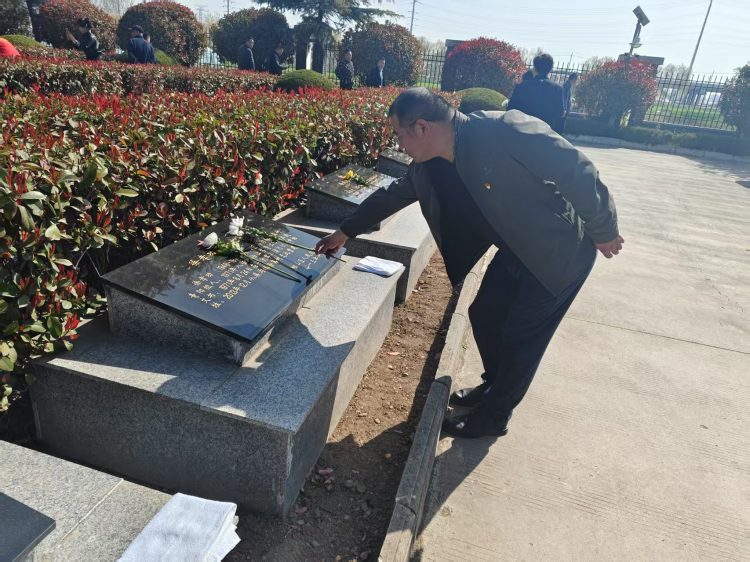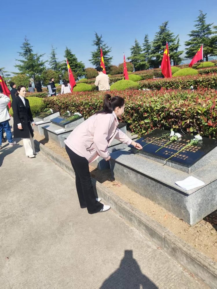 活動伊始,全體黨員整齊列隊,懷著崇敬之情向革命烈士敬獻花籃,寄托著對先烈們的無限哀思與崇高敬意。隨后,在鮮紅的黨旗前,全體黨員莊嚴地舉起右拳,重溫入黨誓詞。鏗鏘有力的誓言在陵園上空回蕩,彰顯了黨員們不忘初心、牢記使命的政治信念。最后,黨員們有序參觀了陵園內(nèi)的紀念碑,支部書記楊旸同志帶領(lǐng)支部黨員紛紛向英雄先烈們獻上鮮花。