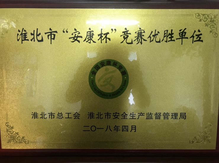 2017年,市總工會(huì)、市安全生產(chǎn)監(jiān)督管理局在全市開(kāi)展了以“安全培訓(xùn)提素質(zhì)、班組管理強(qiáng)基礎(chǔ)”為主題的“安康杯”競(jìng)賽活動(dòng)?;幢笔薪ㄍ犊毓杉瘓F(tuán)有限公司為保障企業(yè)的安全生產(chǎn)及職工的安全健康,充分調(diào)動(dòng)廣大職工參與群眾性安全生產(chǎn)活動(dòng)的積極性、主動(dòng)性和創(chuàng)造性,認(rèn)真貫徹落實(shí)黨的十九大精神,在集團(tuán)公司范圍內(nèi)開(kāi)展2017年度“安康杯”競(jìng)賽活動(dòng),在安全生產(chǎn)工作中取得了優(yōu)異成績(jī),被淮北市總工會(huì)和淮北市安全生產(chǎn)監(jiān)督管理局評(píng)為淮北市“安康杯”競(jìng)賽優(yōu)勝單位。