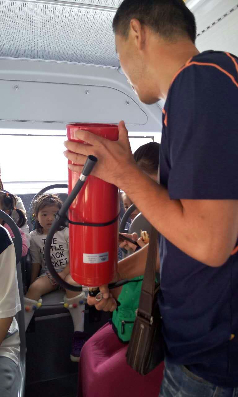 孩子們在家長陪同下,來到107路實(shí)驗(yàn)三小站臺(tái),工作人員詳細(xì)向孩子們講解安全文明乘車需要注意的事項(xiàng)。如何有序地安全上、下車?進(jìn)車廂內(nèi)為什么要扶穩(wěn)坐好?在公交車上與親人走散后怎么辦?如何使用安全錘、滅火器等常見的安全問題,提醒孩子們及家長乘坐公交車一定要遵守乘車秩序,安全文明乘車。接著,工作人員邀請小朋友及家長乘坐107路公交車,并模擬乘車過程遇到急剎車等突發(fā)狀況時(shí)的情景。同時(shí)與小朋友們互動(dòng),演示安全錘和滅火器的使用方法,這一環(huán)節(jié)受到家長的鼓掌點(diǎn)贊。