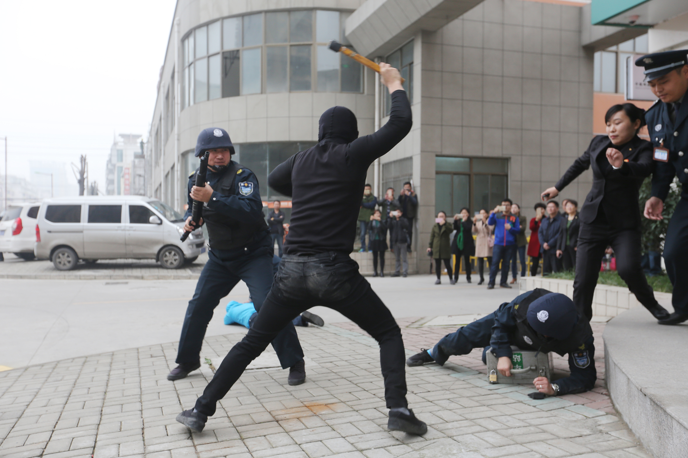 市保安公司開展金融武裝押運(yùn)防暴力搶劫應(yīng)急處置演練