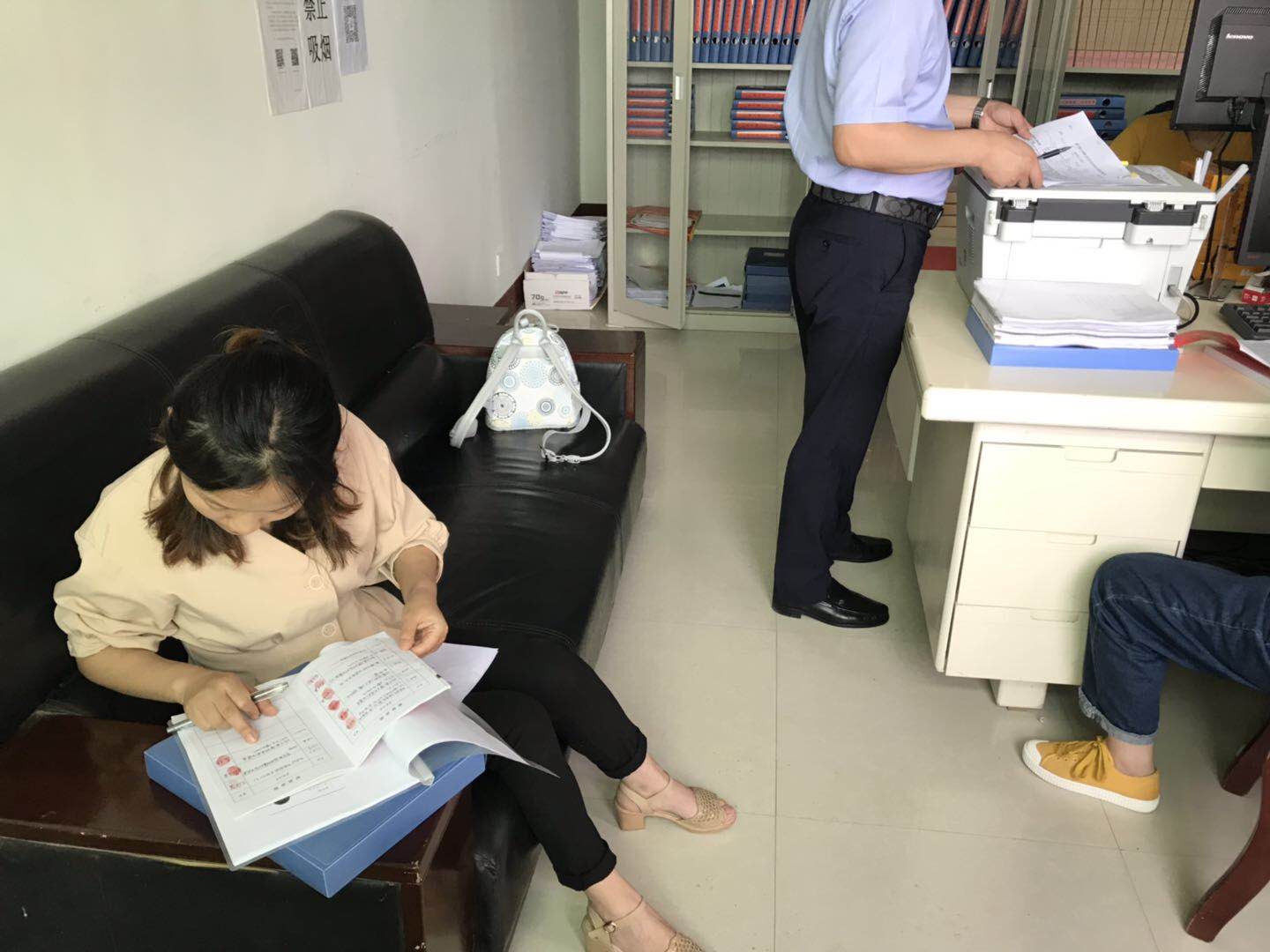 圖為商貿(mào)公司扶貧小組在村委會(huì)查閱幫扶戶檔案資料。
