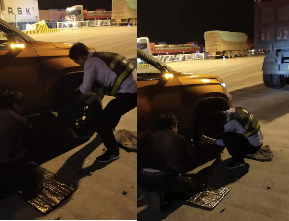 10月23日深夜,一輛外地牌照轎車在經(jīng)過S202收費(fèi)站時突然停在了收費(fèi)廣場不遠(yuǎn)處無法啟動,造成我站收費(fèi)通道擁堵,當(dāng)班收費(fèi)三班班長湯雪峰發(fā)現(xiàn)后立即上前查看情況,從司機(jī)那里得知是被路邊晾曬農(nóng)作物的農(nóng)具扎破了輪胎,因擔(dān)心繼續(xù)強(qiáng)行行駛造成安全隱患,當(dāng)班班長湯雪峰立即組織組員幫助司機(jī)推行車輛至站廣場,同時,有修車經(jīng)驗的收費(fèi)員拿來站內(nèi)便民修車工具幫助司機(jī)更換輪胎,大約經(jīng)過一小時的搶修幫助司機(jī)重新?lián)Q好了輪胎,在司機(jī)的感謝聲中,收費(fèi)員們又從新踏上了工作崗位。